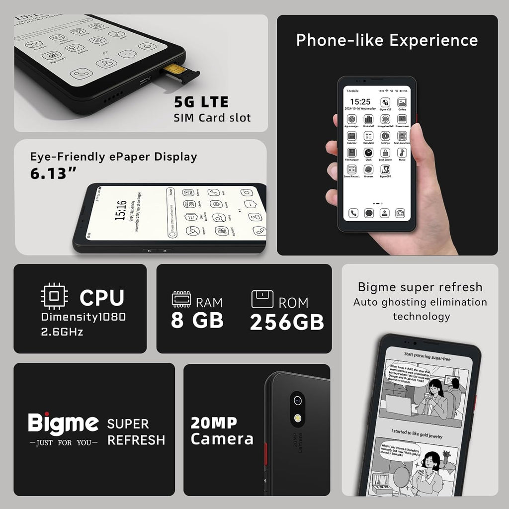 Bigme HiBreak Pro Celular de Tinta Electronica 6.13" – 5G, Android 14 Certificado GMS, Dimensity 1080 y 8GB/256GB