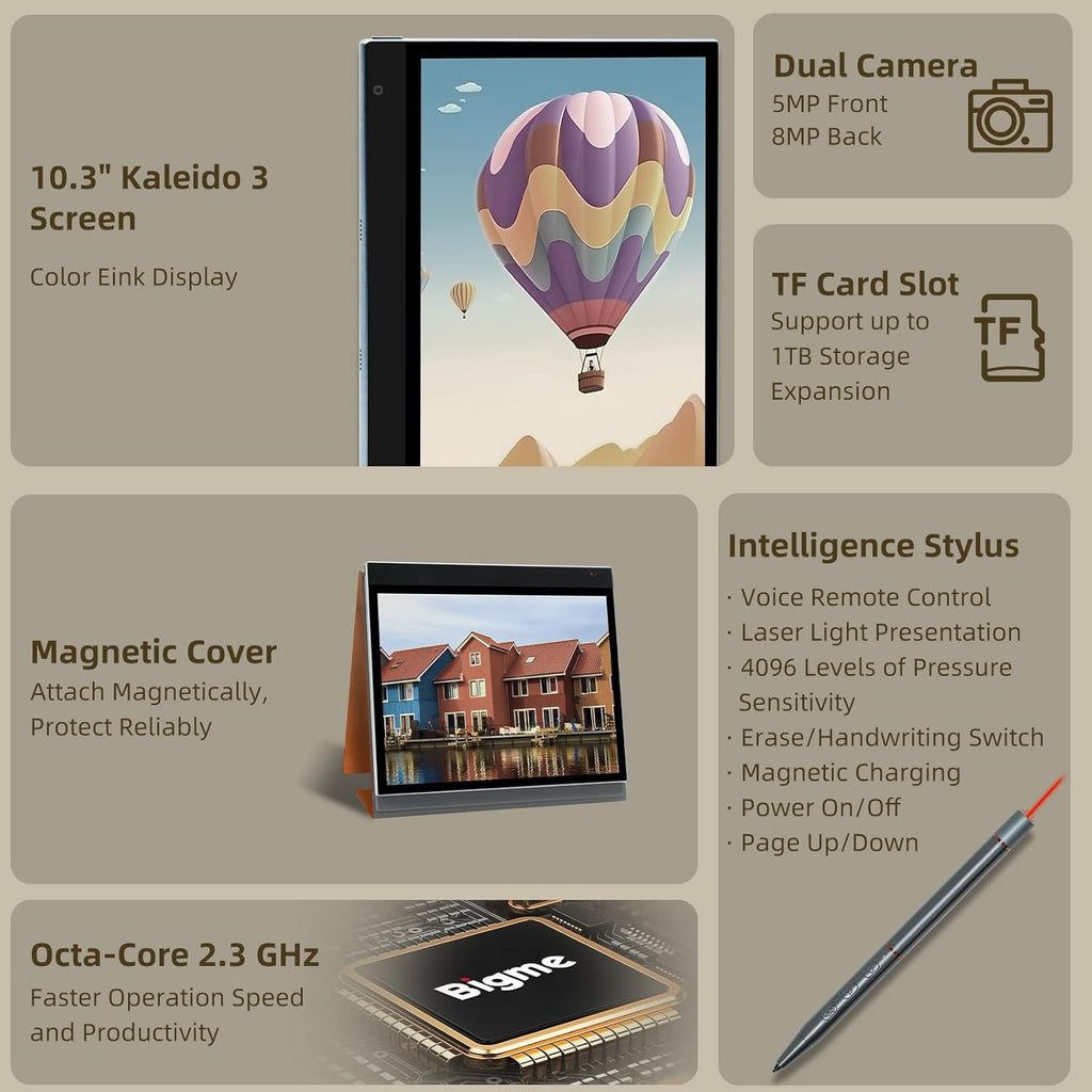 Tablet E-Ink Color Bigme InkNote 10.3" – Pantalla de Papel Digital con Cámara, 4 Micrófonos y Android