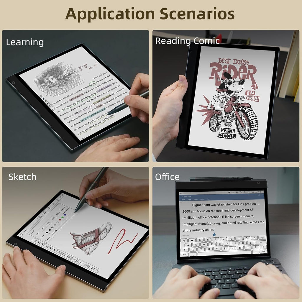 La Bigme InkNote de 10.3" construye un puente entre la escritura tradicional y la comodidad digital. Dibuja, escribe y lee en una pantalla de Tinta Electrónica a Color sin reflejos. Es la libreta inteligente definitiva para la oficina, la universidad y el hogar.